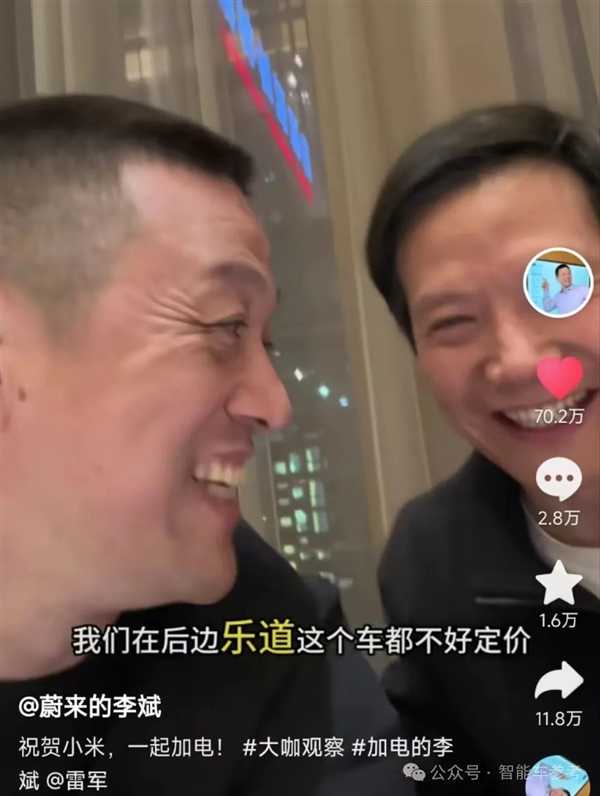 李斌在会后应该还出席了小米的庆功宴,在席间和雷军合拍了抖音感慨: