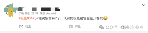 SU7竞品极氪007目前也没有看到降价应对。