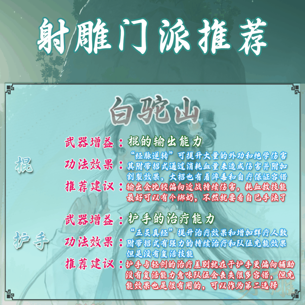 2、治疗职业选择『桃花岛轻剑→白驼山护手』