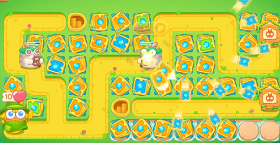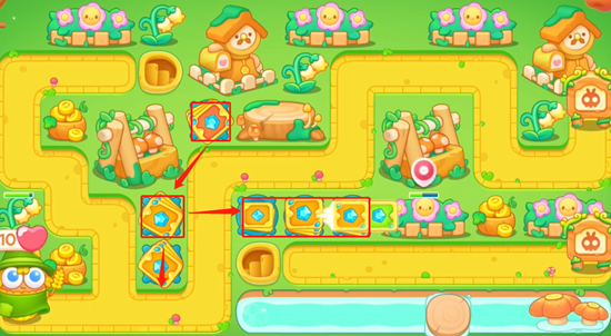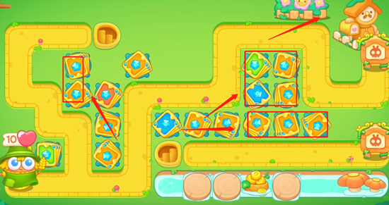 4、最后我们使用金币沿线路放置更多的炮台就行了,将伤害拉满,这一关注意要及时消除果冻。