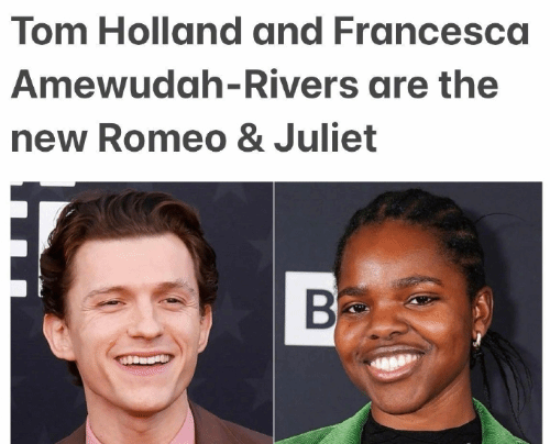 4月5日消息,据外媒,“荷兰弟”Tom Holland将搭档新人女演员Francesca Amewudah-Rivers,出演舞台剧版的《罗密欧与朱丽叶》,从5月开始在伦敦上映,持续到8月。