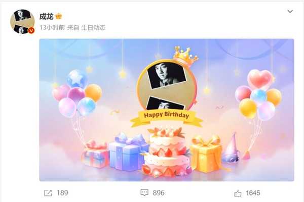 在电影《传说》中与成龙搭档的娜扎也发文祝大哥70岁生日快乐,“大哥生日快乐,从您身上学到很多很多很多,祝大哥永远开心快乐万事胜意。”