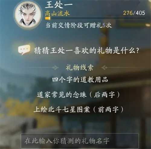 叮当号鱼仔向大家推荐的射雕手游王处一最喜欢的礼物是什么?这是一个游戏玩家们非常感兴趣的话题。王处一是《射雕英雄传》中的主要角色之一,也是一名非常强大的武林高手。为了满足大家的好奇心,我们来看看王处一到底喜欢什么样的礼物吧!