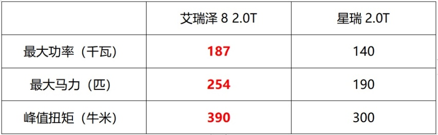 对于传统燃油车用户来说,买车就是买发动机。从动力性能来看,目前艾瑞泽8高能版搭载的鲲鹏动力2.0TGDI发动机,配备了7速湿式双离合变速器,最大功率为187千瓦,最大马力254匹,峰值扭矩为390牛米。星瑞虽然同样配备了2.0T发动机和 7速双离合变速器,但最大功率仅为140千瓦,最大马力190匹,峰值扭矩也只有300牛米。在实际驾驶过程中,艾瑞泽8的发动机表现比星瑞更加出色,提供了更加动力强劲的加速感受,而且在驾驶时表现更为灵活。相比之下,星瑞的2.0T发动机虽然也能够提供不错的动力输出,但在动力输出的线性和响应度上略显不足,整体驾驶体验则是稍显平淡。