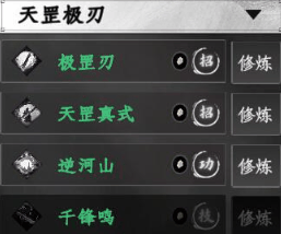 天罡极刃是刀法流派前期的基础武学之一,以外攻伤害为主,拥有2个招式,1个功体和1个秘技。