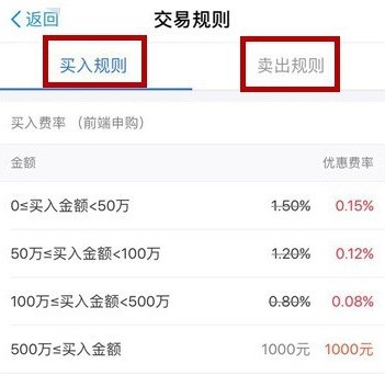 7、进入页面后,即可看到买入及卖出的交易费率。