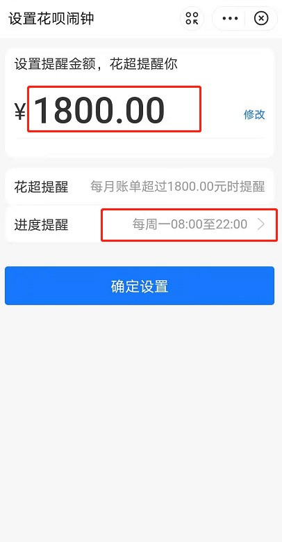 4、最后在这里设置金额及提醒时间,点击确定即可设置成功。