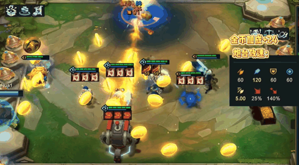 我们利用这个机制,开局后炮台就可以达到3.93的攻速,再给炮台带上点金器,妥妥的金币制机,这波直接梦回金鳞龙。