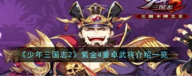 叮当号柚子带您一起重温经典,畅游《少年三国志2》紫霞4董卓武将介绍一览。这是一款备受玩家喜爱的策略游戏,玩家在游戏中扮演不同武将的角色,体验三国历史的精彩故事。紫霞4董卓作为游戏中的一名关键武将,拥有独特的技能和能力,对游戏进程有着重要影响。接下来让我们一起来了解这位武将的详细介绍吧!
