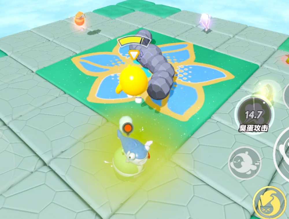 在实际运用中,“百变技能箱”丰富的技能储备与随机的技能变换,会带来无法预测的操作可能,搭配固定技能与道具更是能打出百变连招,令对手防不胜防。值得一提的是,“百变技能箱”中还搭载了全新技能“臭蛋攻击”,为战局带来更多的新奇变化。使用“臭蛋攻击”后将在原地释放臭气,蛋仔进入臭气释放范围会缓慢扣除质量。