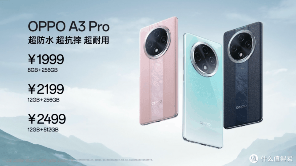 全新发布的OPPO A3 Pro拥有天青、云锦粉、远山蓝三种配色,8+256GB版本售价1999元,12+256GB版本售价2199元,12+512GB版本售价2499元。