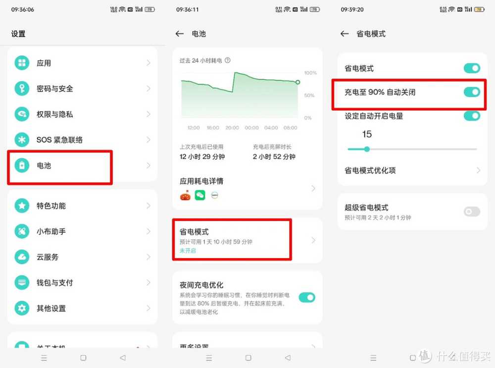 3、打开充电至90%自动关闭开关,当电量达到90%时会关闭省电模式
