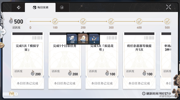 每天1000活跃度需要完成任务才可获得,拥有一百的或者是200的做完可以获得经验,每日必做。