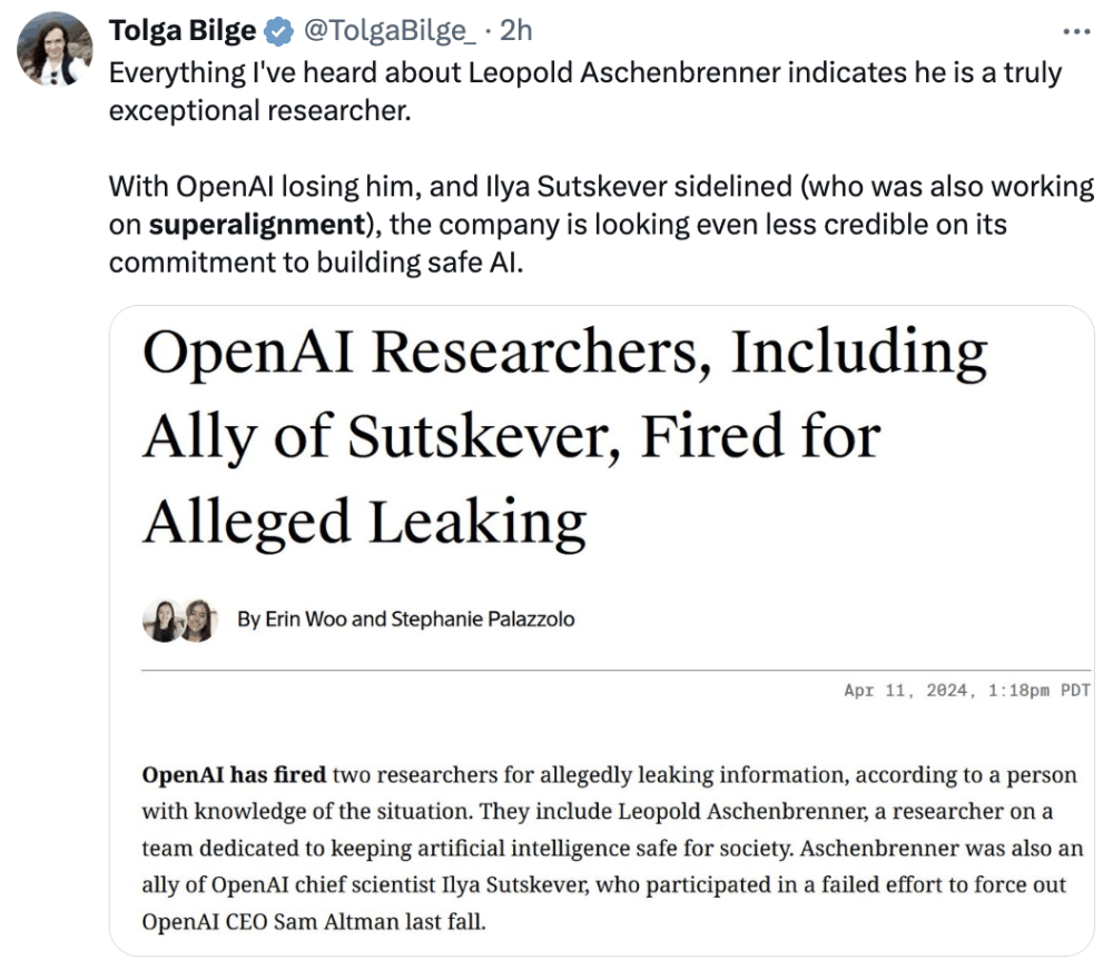 [5]https://www.reddit.com/r/singularity/comments/1c1qo04/openai_superalignment_researcher_fired_for/