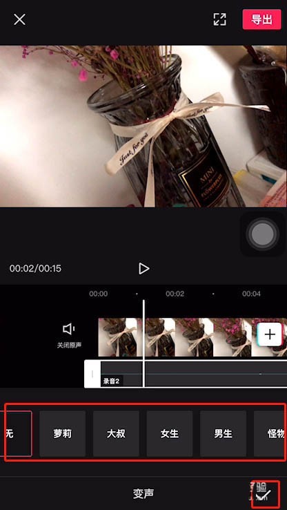 8、在这里可以实现更改声音的效果,选择一款自己喜欢的变声效果,之后点击√保存。