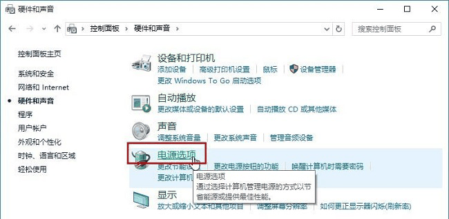 3、接着点击”电源选项”。