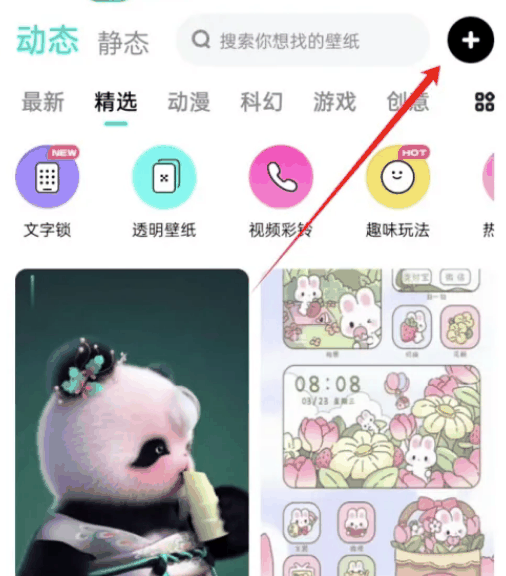 1、打开草莓壁纸app,点击右下角加号图标。