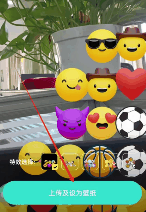 4、选择照片后,选择特效,点击上传及设为壁纸即可。