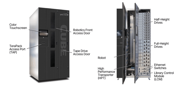 它支持LTO-6/7/8/9磁带存储标准,配备1670个插槽,支持最多30个半高或16个全高磁带机,最大原生容量30PB,最大压缩容量75PB。