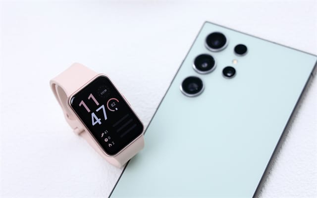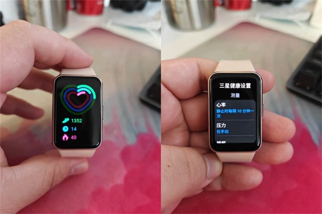 而在配色方面,三星Galaxy Fit3除了基础的水墨黑、星系银配色外,还有一个樱落粉配色,我们这一次拿到的就是这款“樱落粉”配色,淡淡的粉色确实有着樱花的意境,并且饱和度不会特别高,男女用都合适,对于女生来说也是十分友好的一个配色,相比单纯的黑白色就更显得个性化了。