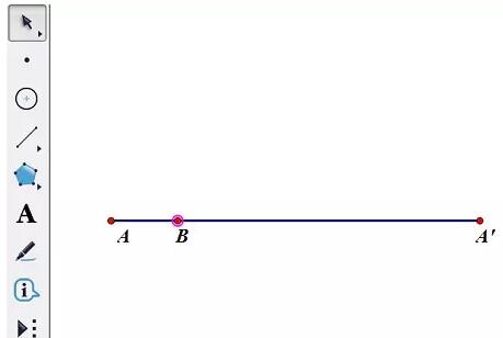2.选中A、A’两点,执行【构造】—【线段】命令,构造线段AA’。选中线段AA’,执行【构造】—【线段上的点】命令,得到一点并标记为B。