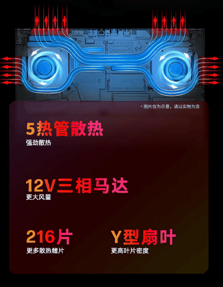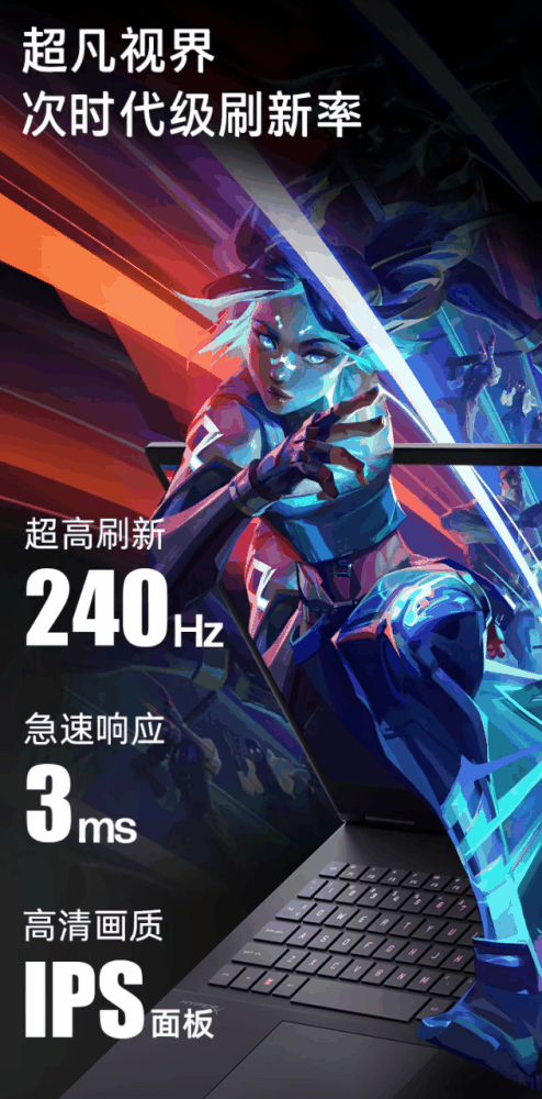这款电脑采用了一块16.1英寸 QHD 240Hz电竞屏,支持3ms响应时间、100% sRGB色域,通过低蓝光双认证,支持DC调光,支持180°开合,采用5热管+ 6风道,RTX 4060性能释放可达140W,支持独显直连。