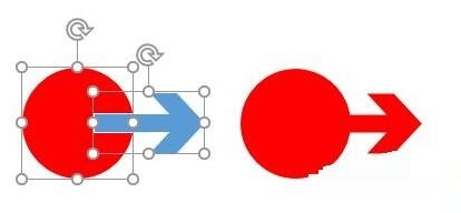 将箭头与之前绘制的圆形组合到一起,同样通过【合并形状→联合】将它们合为单一的形状。