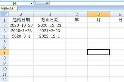 以下面的这个日期为例子,我们要分别计算他们间隔的年月日。