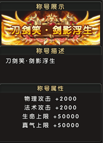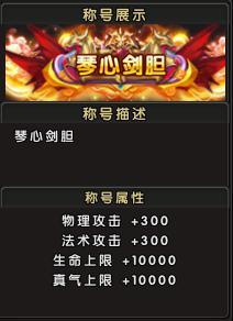 参与新服手机预约活动,即可获取新服专属称号“琴心剑胆”。称号属性:物理攻击+300,法术攻击+300,生命上限+10000,真气上限+10000;参与新服战力排行榜活动,达成条件可解锁限定“刀剑笑”系列称号