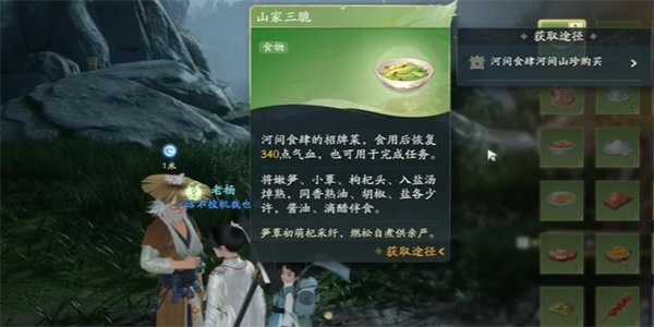 3、然后就需要把山家三脆出示给这个NPC进行品尝即可。
