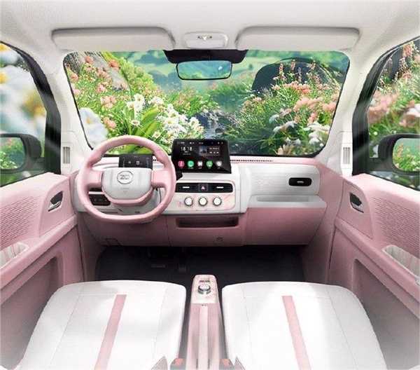 车身采用了彩虹配色设计,车顶与下方包围相呼应,配以封闭式彩虹轮毂,整体造型十分可爱。