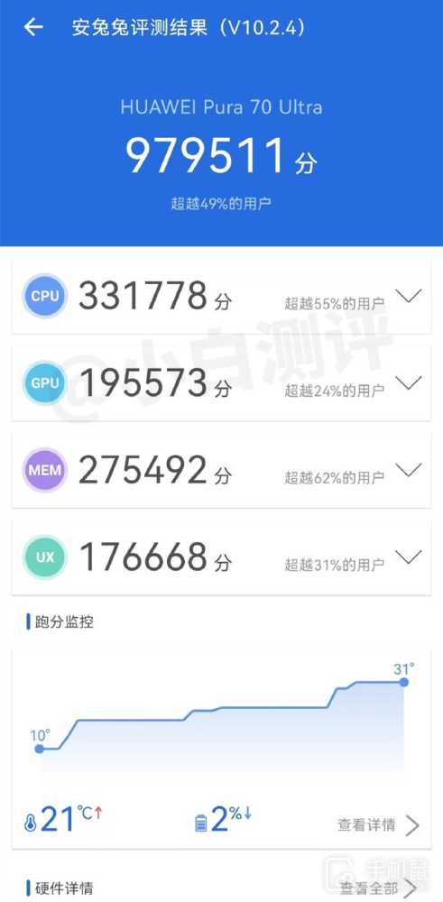 华为Pura 70 Ultra安兔兔最新版跑到了97W分,这个数据对于很多的小伙伴来说可能是比较难以接受的,不过华为手机本身就是一个比较有争议性的,买的人可能不会问,问的人可能就不会买了。