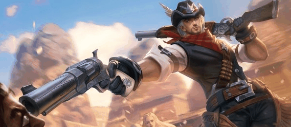 克林特一枪打出,一枪五发,每一颗都是一个扇形范围,每一颗都是一个目标。若同一个目标中了多枪,伤害将会逐步降低