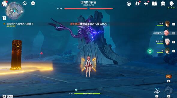 1、找到深海龙蜥之群,在这个雷龙蜥跳到柱子上后。