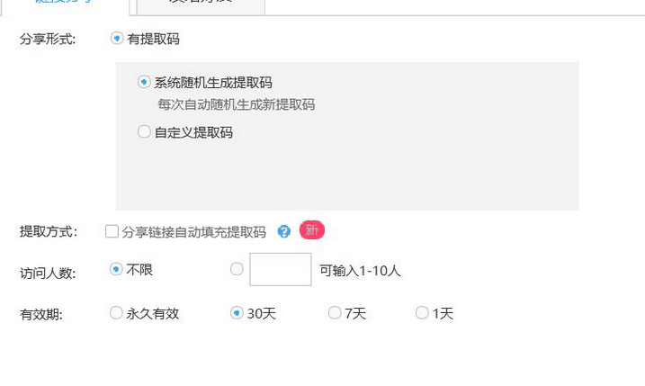 2.分享文件,需要创建链接,分享的形式选择有提取码,有效期选择30天,然后选择创建链接。