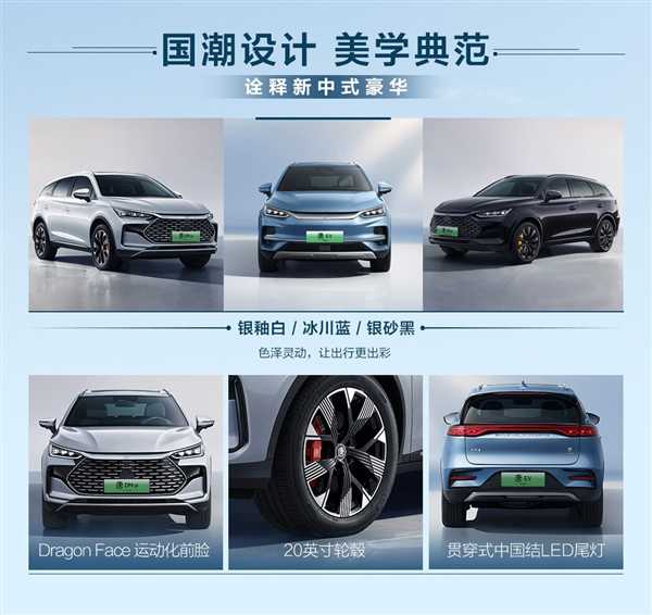 设计方面,新车均延续Dragon Face设计语言,EV荣耀版采用封闭式前格栅,DM-p荣耀版前进气格栅采用了龙鳞式设计,上方的贯穿式银色装饰条则是龙须的化身,车尾配备了比亚迪最新的贯穿式中国结元素LED尾灯组。