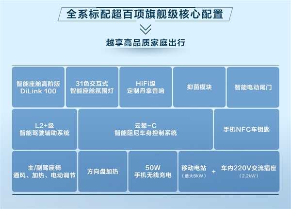 同时还全系标配云辇-C和智能座舱高阶版-DiLink 100,云辇-C智能阻尼车身控制系统,可实现悬架阻尼毫秒级调节,在车辆急加速、急减速及高速过弯时提高悬架硬度,有效抑制车身俯仰及侧倾,提升车辆操控性。