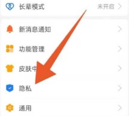 2、然后在列表中找到【隐私】,然后选择【常用隐私设置】