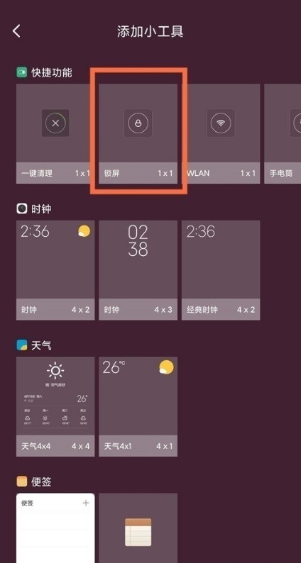3、再点击【锁屏】,将其添加到桌面。