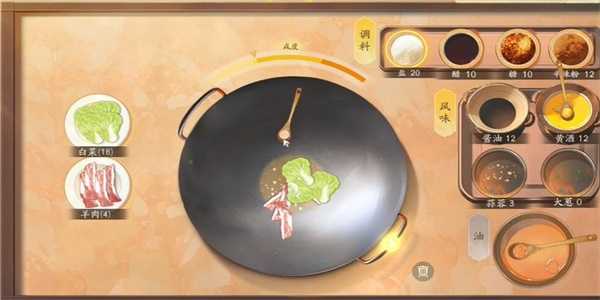 2、接着我们就需要进入到烹饪页面,在此选择白菜和羊肉。