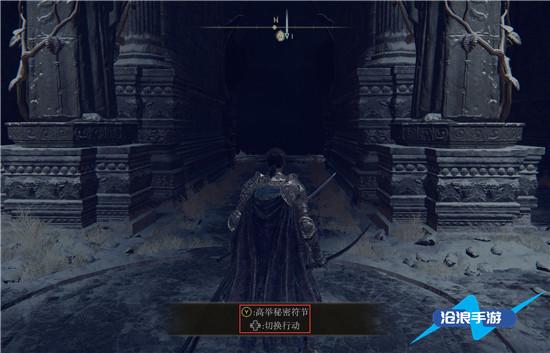 10、回到洛德大升降机,走进电梯里,切换互动,选择举起秘密符节前往雪山另一半。