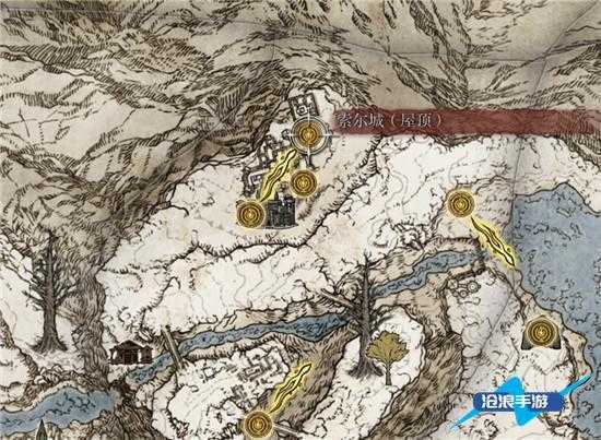 9、前往雪山探索索尔城,在城中击败Boss老将,上楼梯拾取圣树秘密符节(左)。