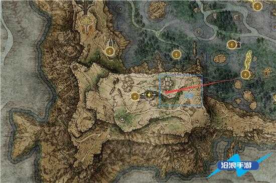 4、当然,如果还是没有开启白金村赐福的话,玩家可以根据下图路线从湖里出发穿越沼泽来到白金村。