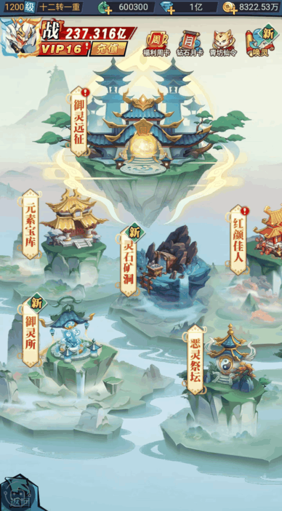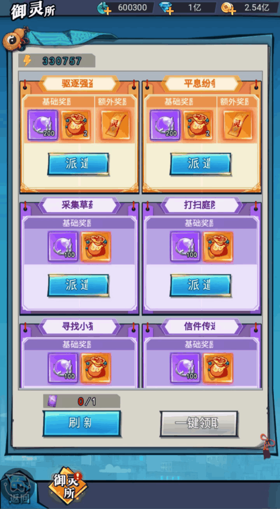 “御灵远征”是游戏主要的特色玩法之一,在这里大家可以通过挑战获得珍惜的SSS级灵将碎片,也是大家可以快速获取SSS级灵将主要的方式之一,所以大家一定不要错过咯!“御灵所”比较比较有意思,可以派遣灵将去做采集草药、打扫庭院、送快递、找小猫等一些趣味的小任务,轻松获取奖励,咱们修仙之余可以都来做一做。“灵石矿洞”也是差不多的休闲玩法,大富翁掷骰子就可以获取珍惜矿藏。