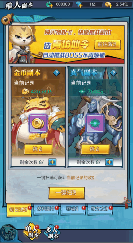 《异界深渊:大灵王》最精华的部分莫过于丰富的副本玩法,而且每挑战一个副本都可以获得各种各样的奖励,副本里面包含了单人和多人两种,每天都会刷新挑战次数,也就是说这些奖励是大家每天都可以拿到的,所以玩家们进入游戏之后重点一定要放在副本挑战上。