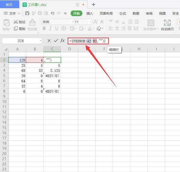 第一步:乱码所在列使用公式相同。选中该列第一个单元格,将内容区套用公式【IFERROR】,输入【=IFERROR(A2/B2,【】】,按Enter。如下图所示: