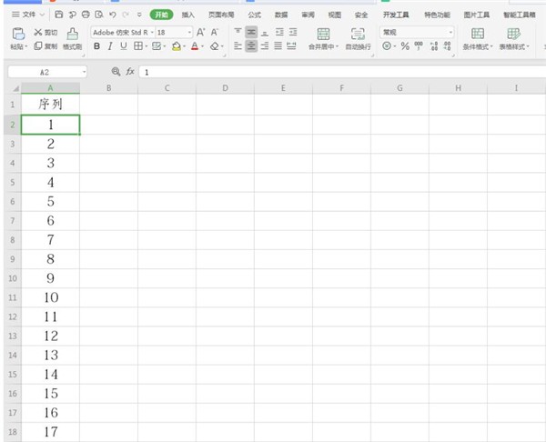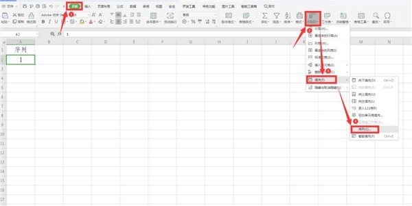 点击工具栏上的【开始】选项,在下拉菜单中选择【行和列】,二级菜单选择【填充】,接着点击【序列】: