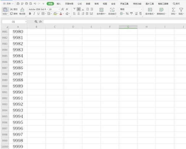 将鼠标移动到最后单元格,会发现序列号已经到达10000: