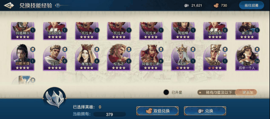 在此基础上,《世界启元》还将招募系统与兵种解锁、英雄培养这两个玩法进行了融合。毕竟玩家想要主力培养的英雄是有限的,为了不让其他英雄最后只能放在仓库里吃灰,游戏允许玩家将不使用的英雄作为素材,解锁后期更为强力的兵种,或是转化为特定技能和技能经验,为培养主力部队提供帮助。