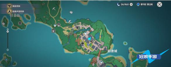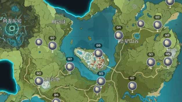 2、蒙德地区的位置如下图,推荐到蒙德城的屋顶上搜索,会比较多,其他地方相对分散。